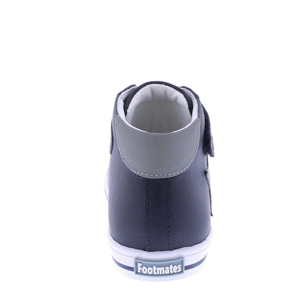 Leather high-top sneaker featuring hook-and-loop closure, elasticized false-laces, and decorative star applique and perforations. Offered in matte colors; sizes ranging from 3.0 infant - 3.0 youth.