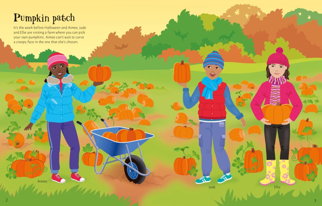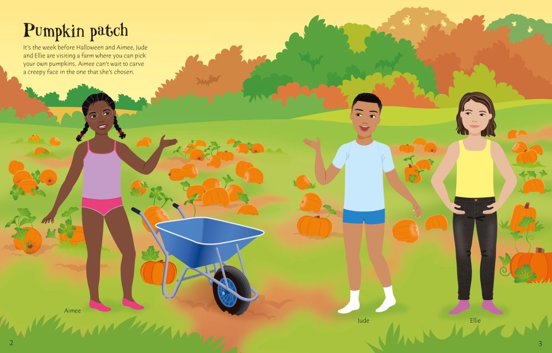 Have fun choosing the stickers for the dolls' outfits as they prepare to go trick-or-treating. Scenes include carving pumpkins, performing a witchy dance, some scary animals, spooky scarecrows, an 'un-lucky' dip and lots, lots more.